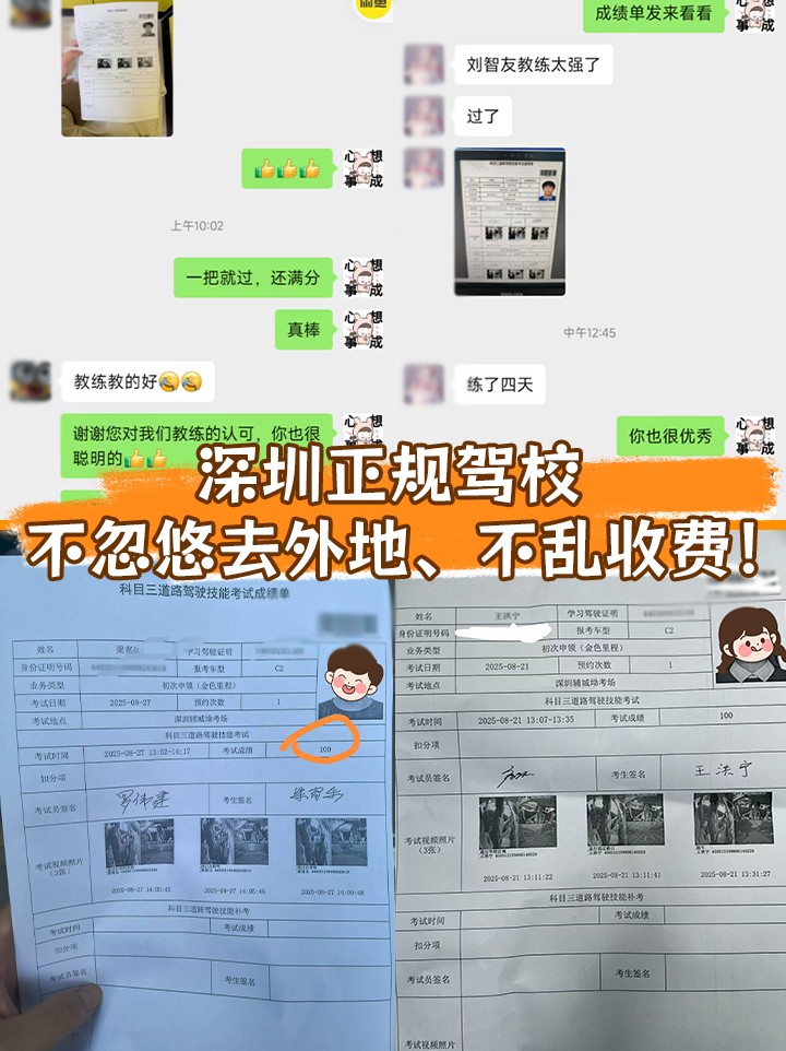 📍 在哪学? 深圳各区都有练车场!就近安排~超方便! 💺 一人一车,一对一教学! 提前约课不等待,来了就学、学完就走~超高效! ⏰ 时间自由:每天可练1-4小时,不限学时,学到会为止! 挂科也不怕!5次不过免费重学👏 📅 课表透明、教练规范! 主管+客服双监督,杜绝“吃拿卡要”🙅 明码标价、收费清晰,签正规合同➕开发票! 权益有保障,校长亲自处理问题✨ 🚦 怎么考? 深圳学、深圳考,考场可自选~ 快的话2个月拿证🪪 科一科四手机学,科二场地练,科三路上开~ 📌 C1手动 vs C2自动? C2更好考,适合日常家用~ 全国考试内容统一,可异地转考/迁证~ ✅ 靠谱提醒: 深圳正规驾校,不忽悠去外地、不乱收费! 建议考前实地模拟,通过率更高哦~
