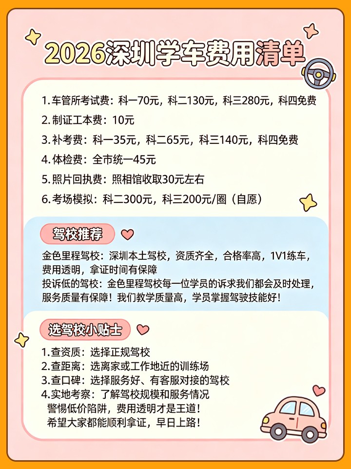 姐妹们,在深圳想学车又怕被坑?这份2026最新费用清单+45天拿证攻略收好👇